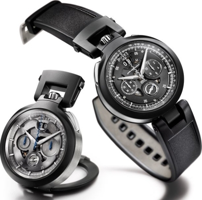 Для Евро-2012 были выбраны часы Bovet Chronograph Cambiano в стальном 45-миллиметровом корпусе, которые могут преображаться из наручныз в карманные или настольные.